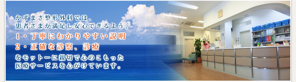 かずまさ整形外科は地域の皆様の頼れる『健康創造パートナー』として、皆様のお役に立ちたいと考えております。